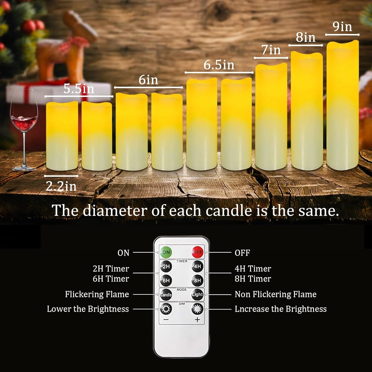 Each set includes nine flameless LED candles crafted from premium real wax and equipped with flickering light technology that perfectly simulates natural candlelight. With their remote control and timer function, you can easily adjust brightness, set the mood, or schedule automatic on/off times. No more worrying about smoke, dripping wax, or fire hazards — just effortless ambiance at the touch of a button.